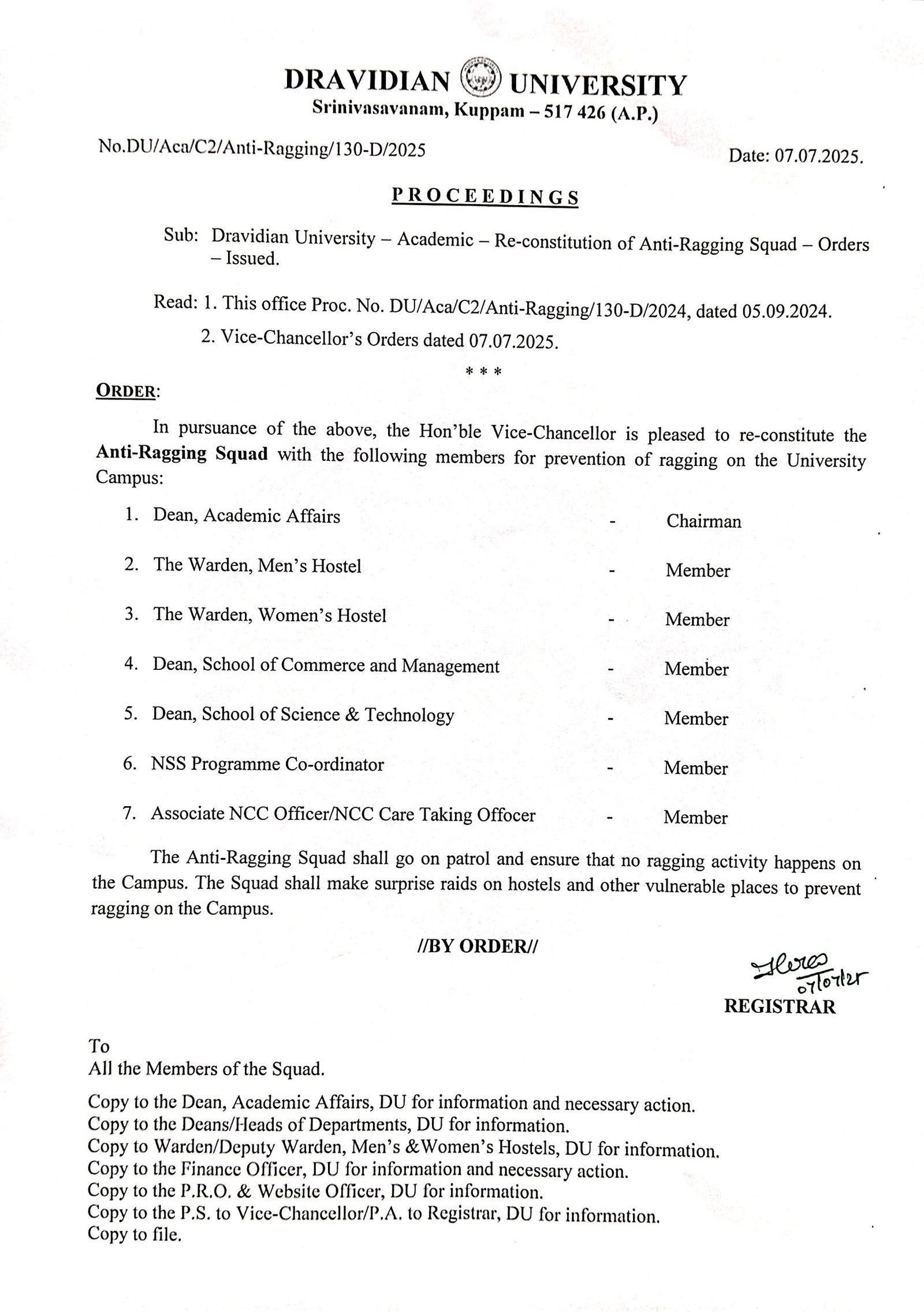 His Excellency Sri S. Abdul Nazeer, the Honorable Governor of Andhra Pradesh State is the Chancellor of the Dravidian University.